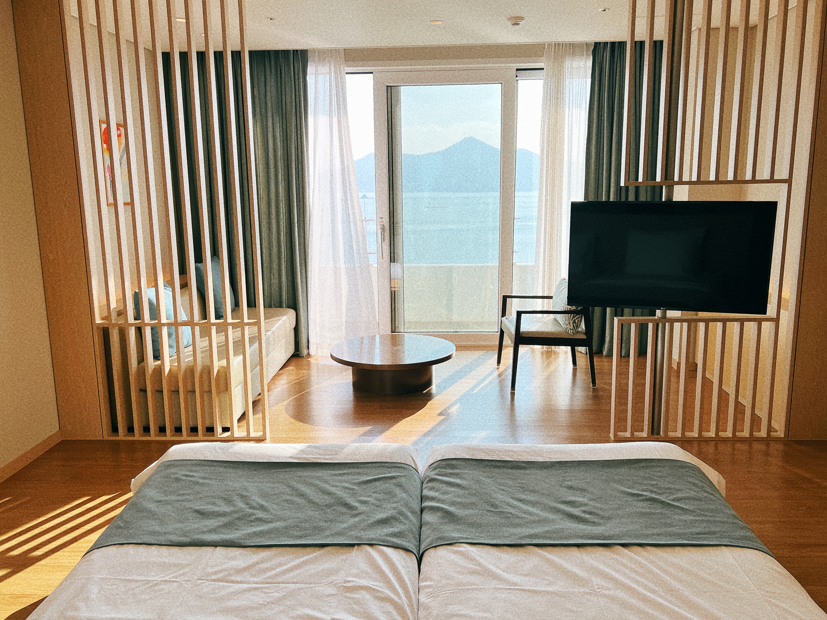 한화리조트 거제 벨버디어의 객실 타입은 크게 3가지가 있습니다. 디럭스-스위트-로얄 순서로 객실이 더 좋아지는데요. 디럭스 타입의 경우 총 101실이 있으며, 이 중 40여개의 객실에만 욕조가 설치되어 있습니다.
