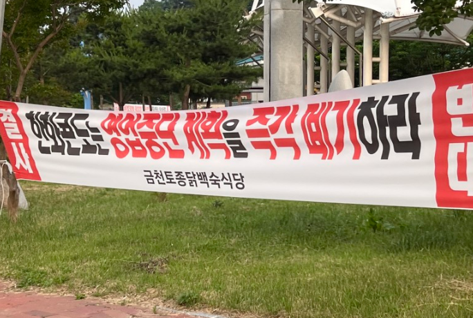 백암온처에 걸려 있던 폐업철회 요청 현수막